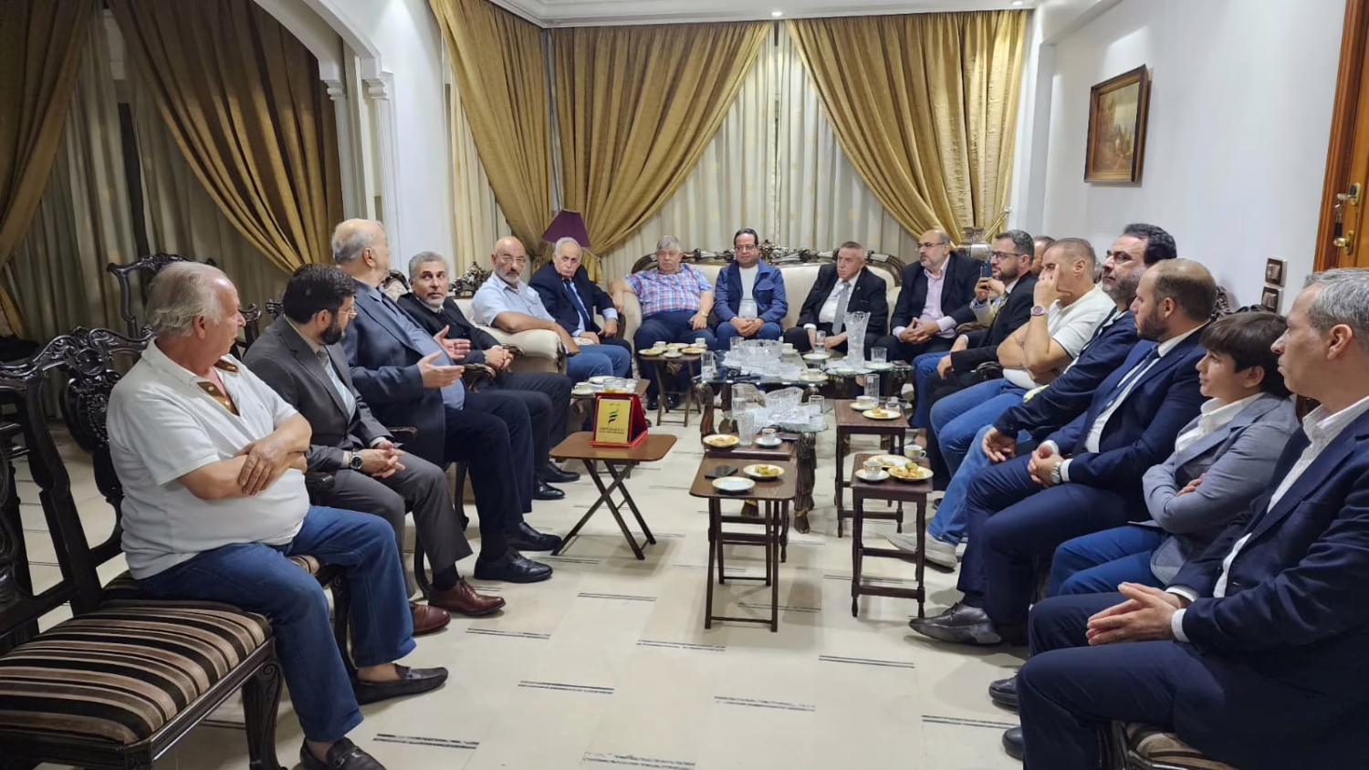 On Saturday, August 30, 2025, a delegation from the Syrian Future Movement, accompanied by a group of prominent figures from Damascus, visited the home of Ambassador Dr. Farouk Taha in the Kafr Sousa area of central Damascus.