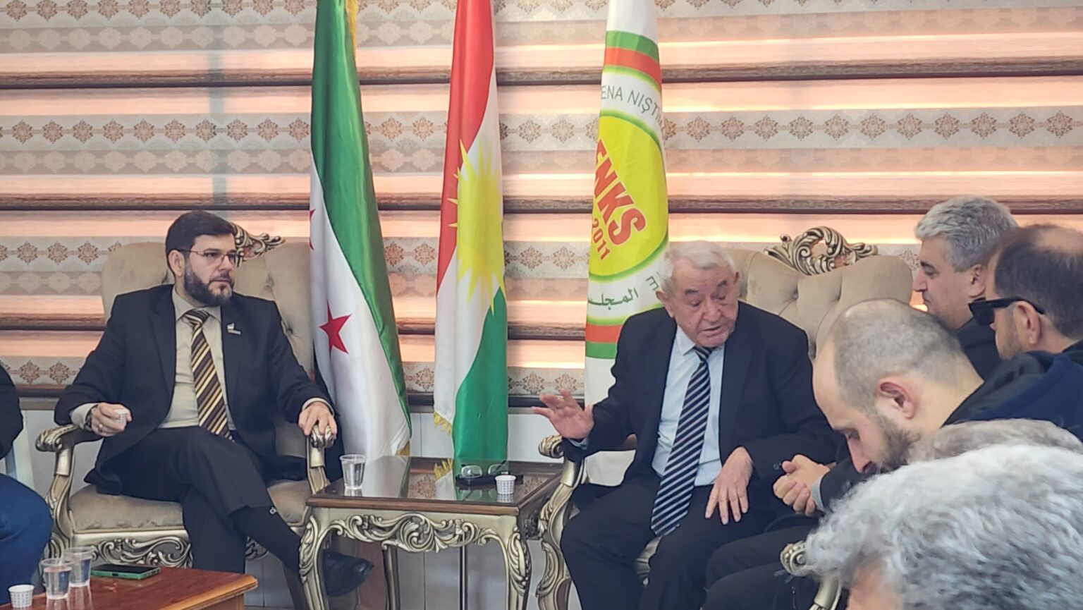 A large, high-level delegation from the Syrian Future Movement, headed by its president, Dr. Zaher Badran, visited the office of the Kurdish National Council in Damascus on December 13, 2025. They were received by: