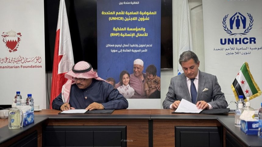 The Syrian Future Movement welcomes and commends the agreement signed by the Royal Humanitarian Foundation of the Kingdom of Bahrain with the United Nations High Commissioner for Refugees (UNHCR) in Syria, which provides a grant of US$2 million to support the reconstruction and rehabilitation of damaged housing in Syria.