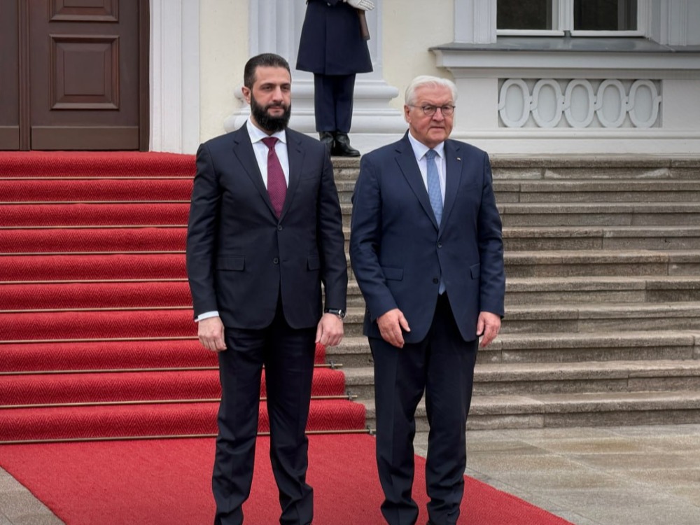 In Berlin, President al-Sharaa met with President Frank-Walter Steinmeier and Chancellor Friedrich Merz, and participated in a Syrian-German economic roundtable with Foreign Minister Johann Wadephul.