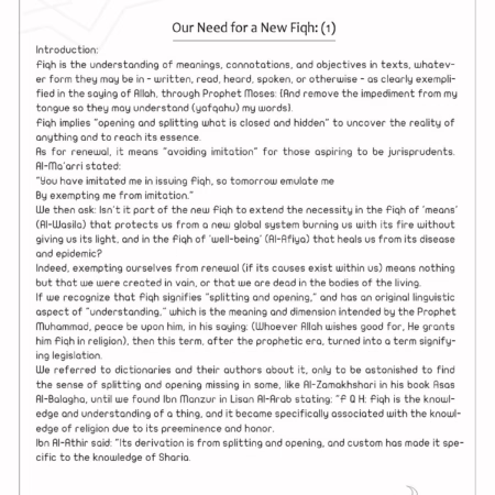 1- Our Need for New Fiqh (1): Dr. Ihssan Baadarani