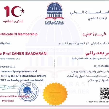 Granting the President of the Syrian Future Movement a membership certificate in the International Union of Universities and its importance.