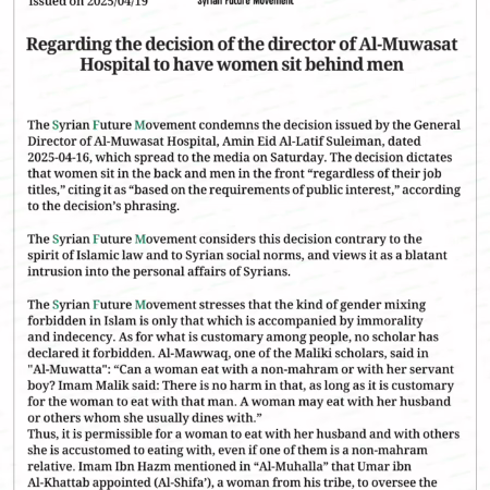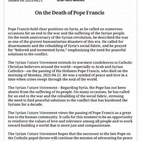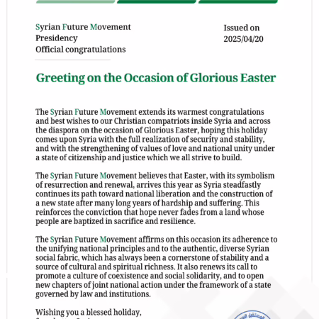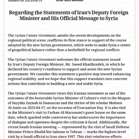 The SFM’s News: The Political Office of the Syrian Future Movement issued a statement titled: On the Remarks of the
