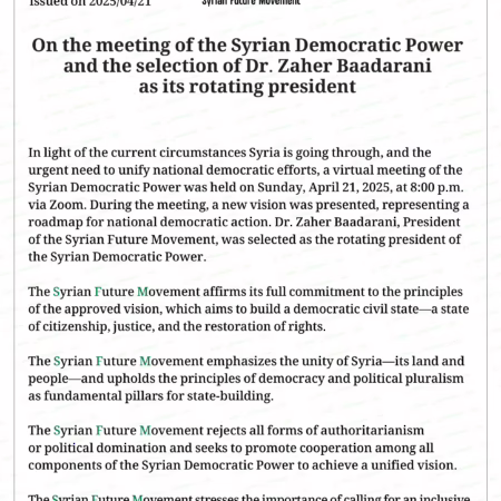 The SFM’s News: The Political Office of the Syrian Future Movement issued a statement titled: On the Syrian-Iraqi Meeting in