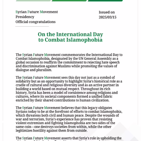 The SFM’s News: The Political Office for The Syrian Future Movement issued a Press release titled: On the ratification of
