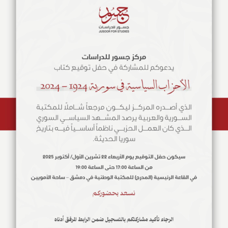 Invitation to the book signing ceremony of Political Parties in Syria 1924-2024