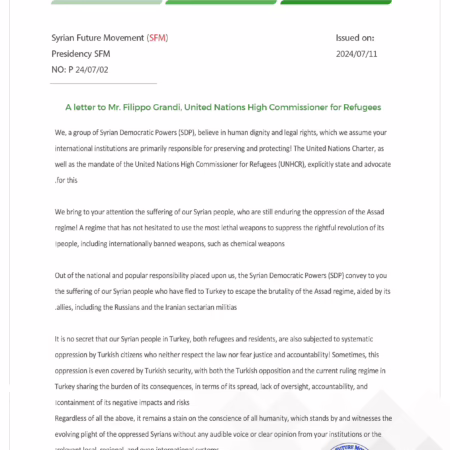 The SFM’s News:The media office of the Syrian Future Movement (SFM) published a cartoon titled “Syrian Revolution Cartoon No. 39.”