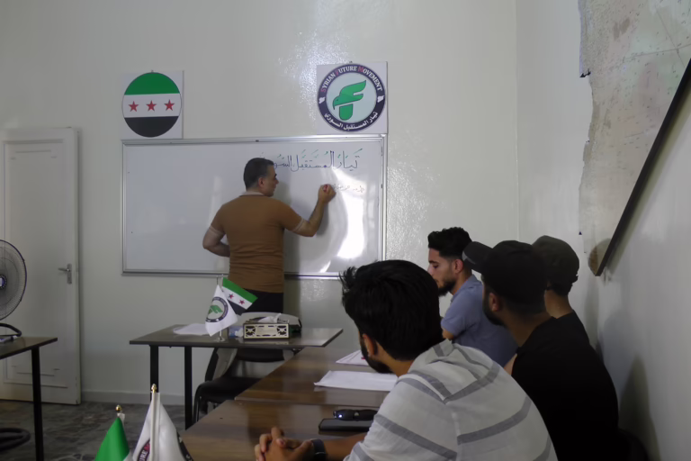 The Syrian Future Movement awards certificates of completion for English language training (audio) to enhance language skills.