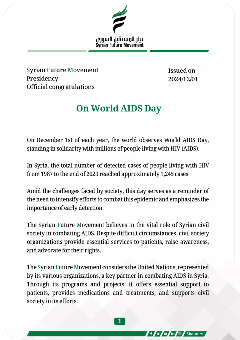 The importance of World AIDS Day and the role of civil society in Syria in combating the epidemic.