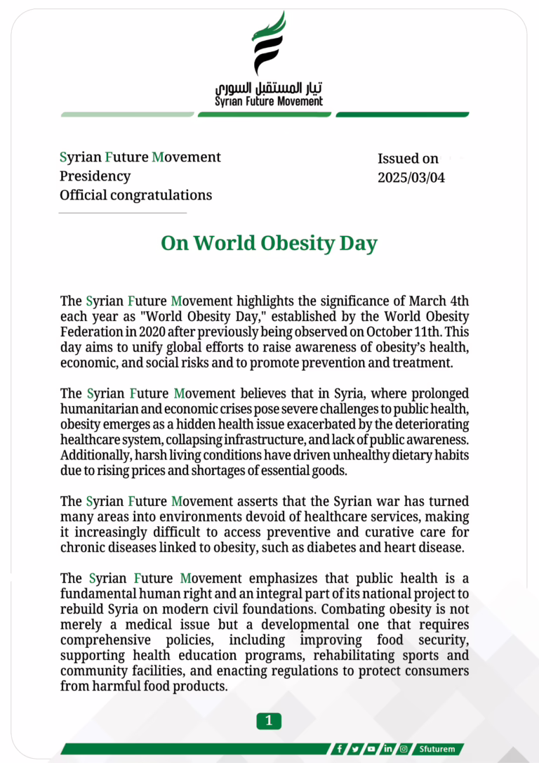 Find what interests you at Syrian Future Movement? Don't hesitate to join us