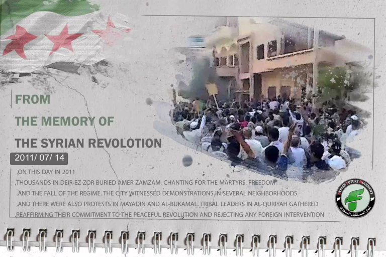 On this day in 2011: Thousands of people in Deir ez-Zor mourned the young man, Amer Zamzam, who was killed