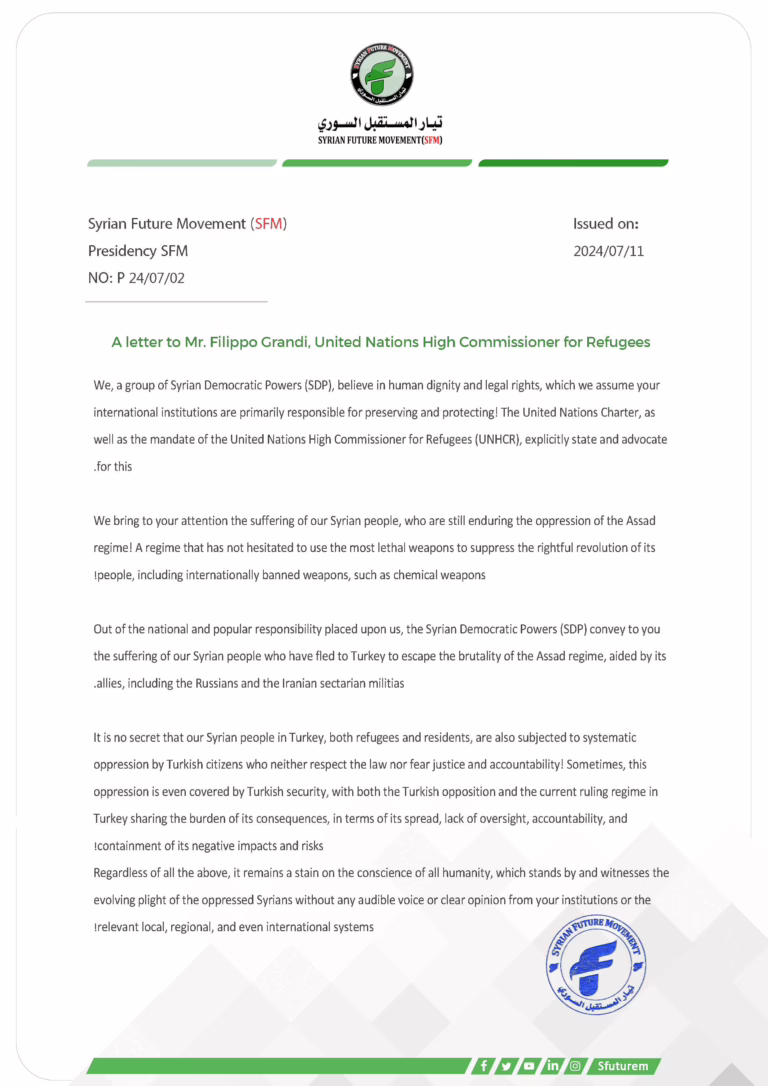 Letter from the Syrian Democratic Forces to António Guterres on human rights and the suffering of Syrians in Türkiye.