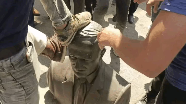 September 4, 2023: The image of the largest idol, "Hafez al-Assad," was removed from the government building in the center