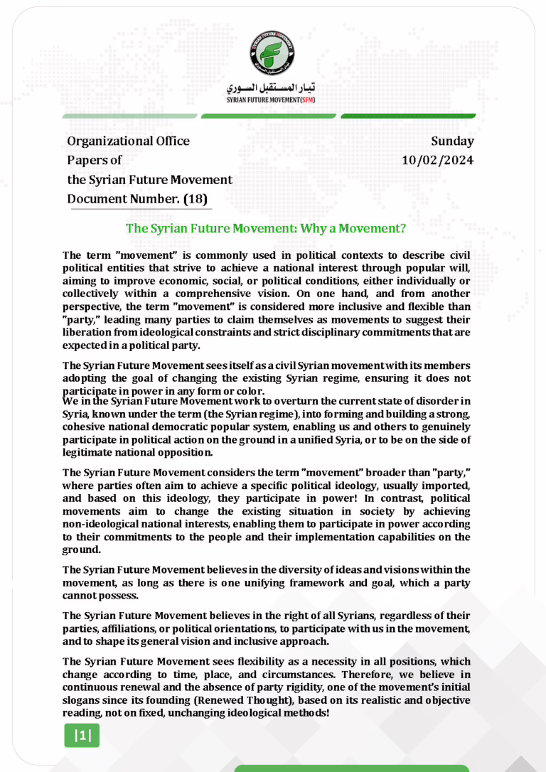 Find what interests you at Syrian Future Movement? Don't hesitate to join us