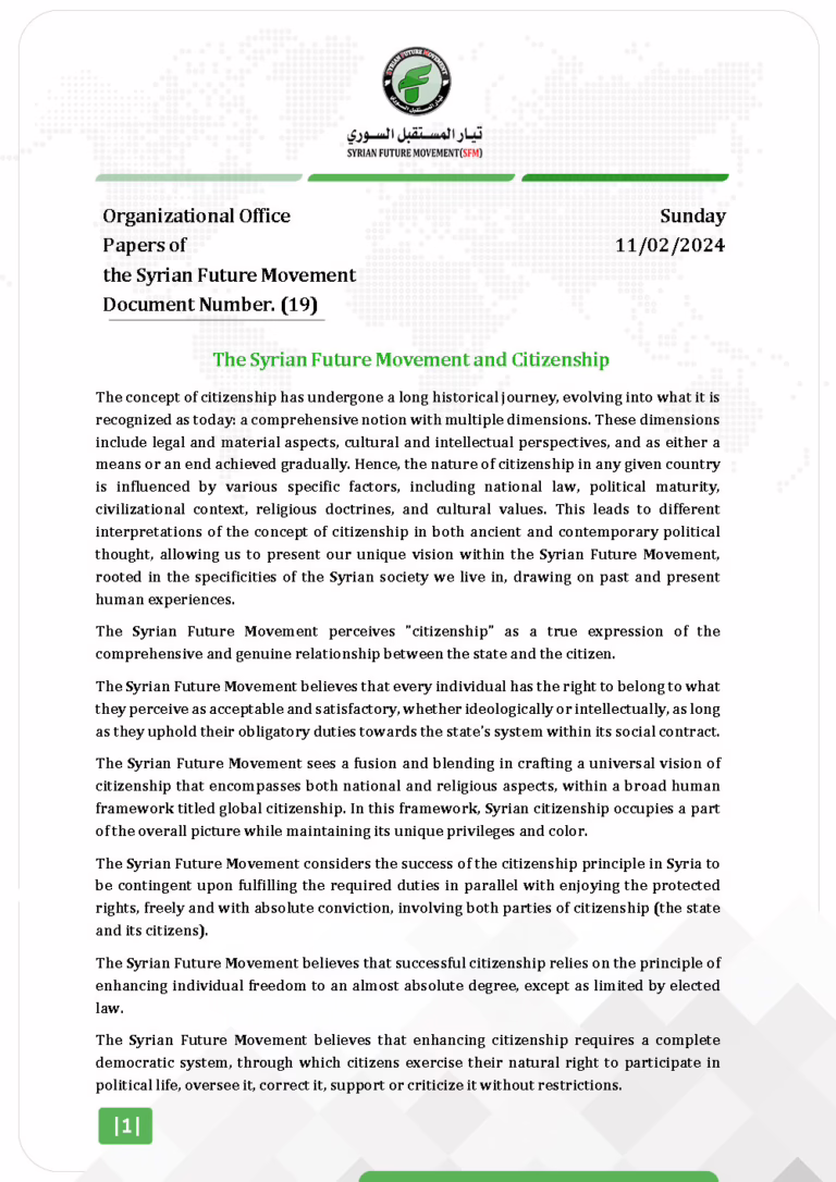 The Syrian Future Movement's vision of citizenship and its impact on the relationship between citizens and the state in Syrian