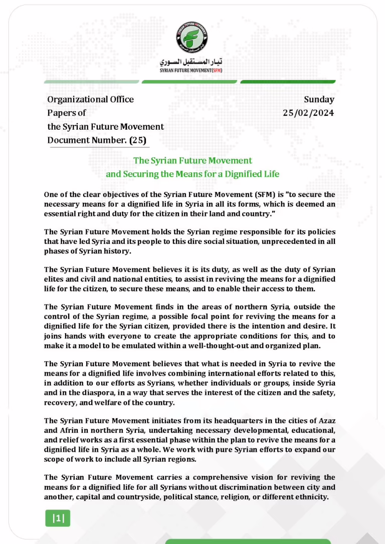 The Syrian Future Movement and Securing the Means for a Dignified Life
