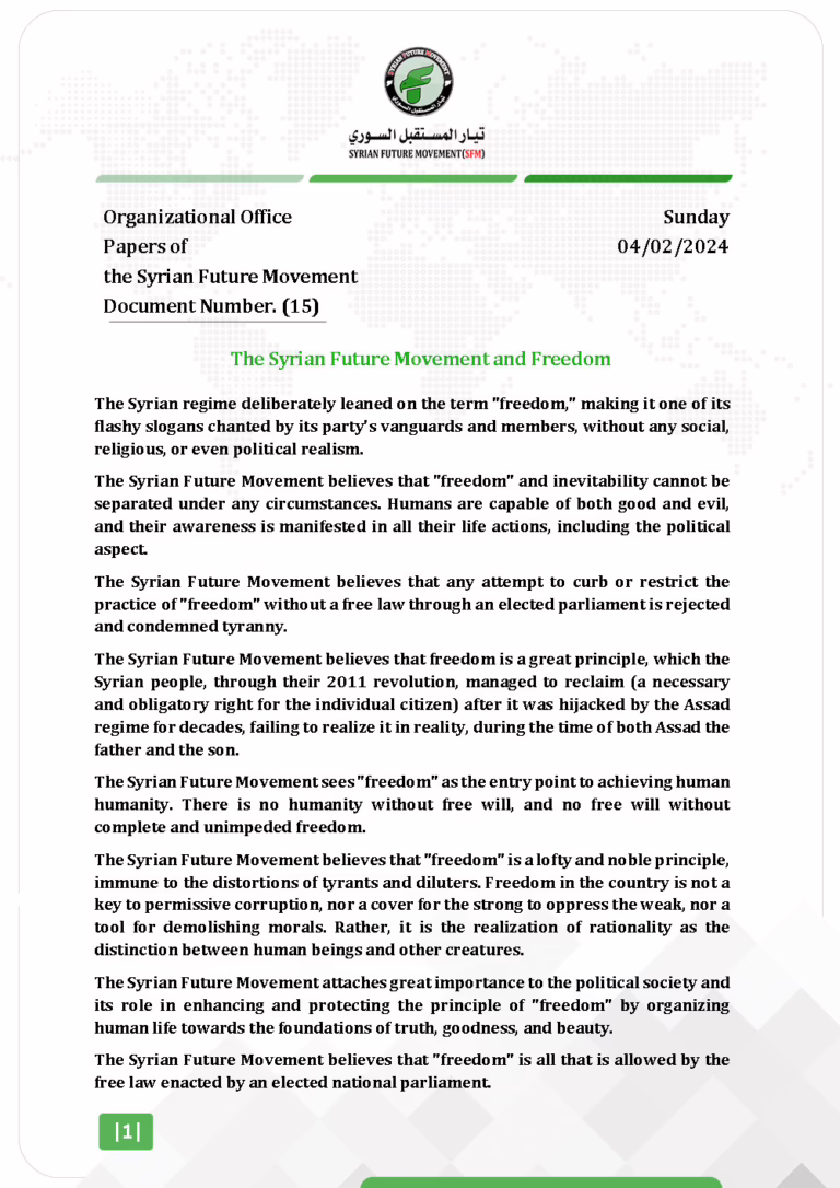 The Syrian Future Movement's vision for freedom is a movement that aims to build a more democratic future.