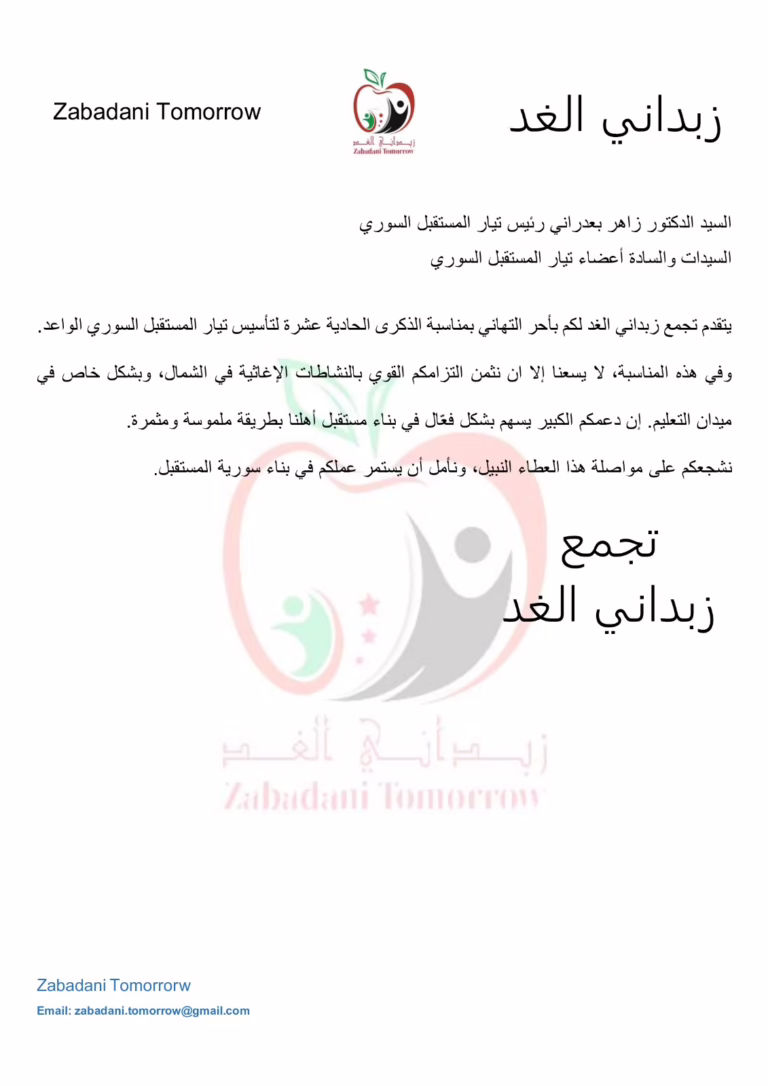 Congratulations from Zabadani Tomorrow to the (SFM).