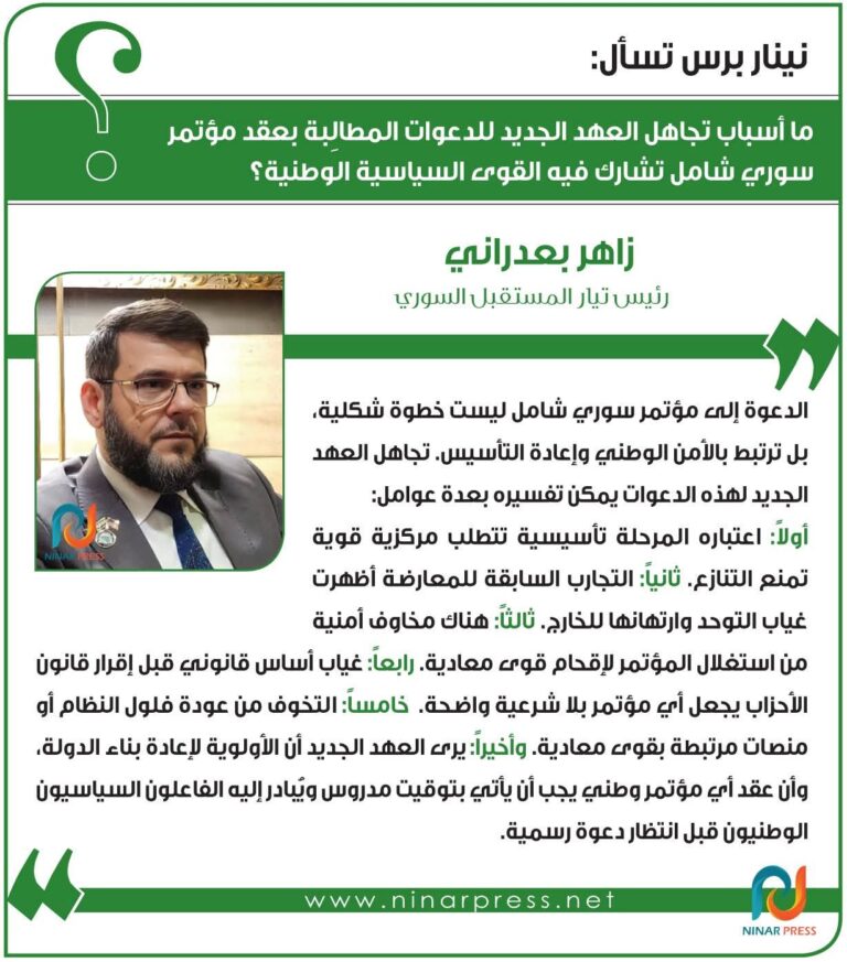Reasons for the new regime's disregard for calls to hold a comprehensive Syrian conference with national political forces and its