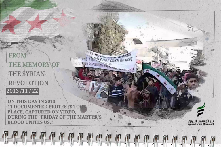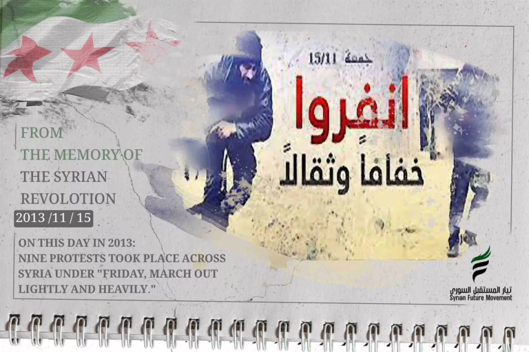 Details of the Syrian revolution on the anniversary of the 'Friday of the March, Light and Heavy' demonstrations in 2013.