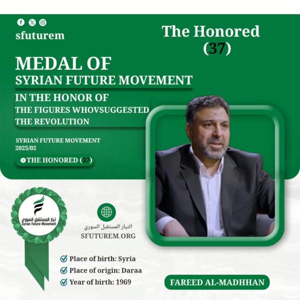 We at Syrian Future Movement, based on his scientific and academic efforts, his standing alongside his people in their revolution
