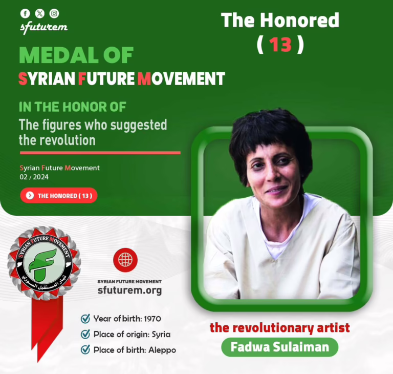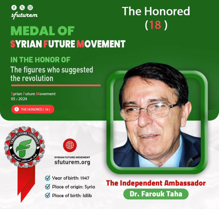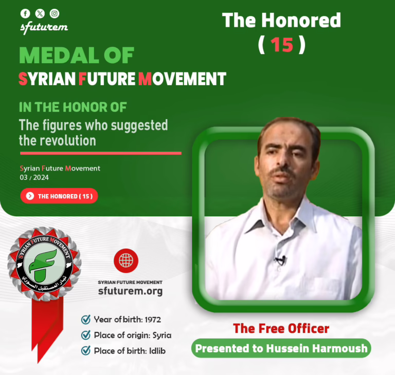 Honored by the Syrian Future Movement (SFM) No. (16) Abdel Qader Saleh “Hajji Mare”.