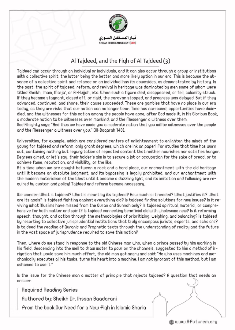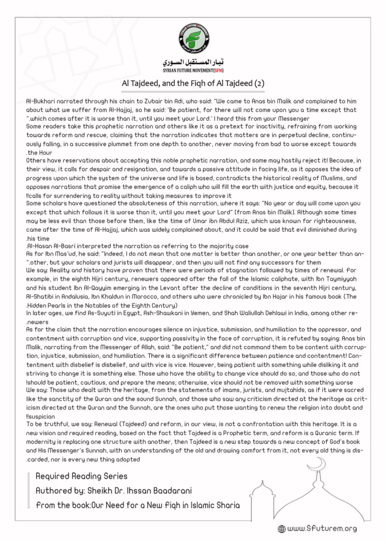 Renewal and the Jurisprudence of Renewal with Dr. Ihsan Badrani. The group's role in reform and development is the best