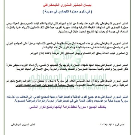 بيان المنبر السوري الديمقراطي في ذكرى مجزرة الكيماوي في سورية