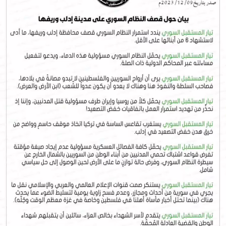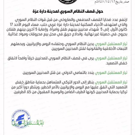 بيان حول قصف النظام السوري على مدينة إدلب وريفها