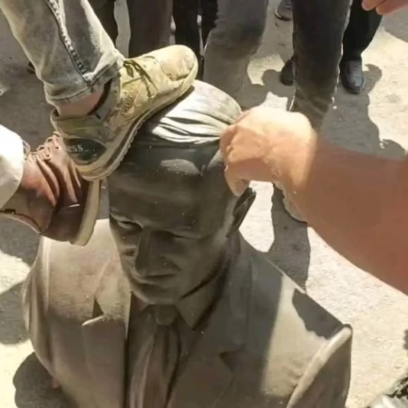 2023/09/04 تمّ إزالة صورة الصّنم الأكبر "حافظ الأسد" عن المبنى الحكوميّ وسط ساحة الكرامة في قلب مدينة السويداء خلال مظاهرةٍ