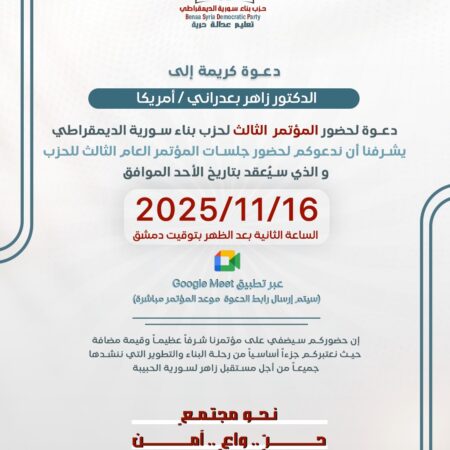 تهنئة لـ حزب سورية الديمقراطي بمناسبة انعقاد المؤتمر العام الثالث، وتهنئة بالقيادة الجديدة التي انتخبت.