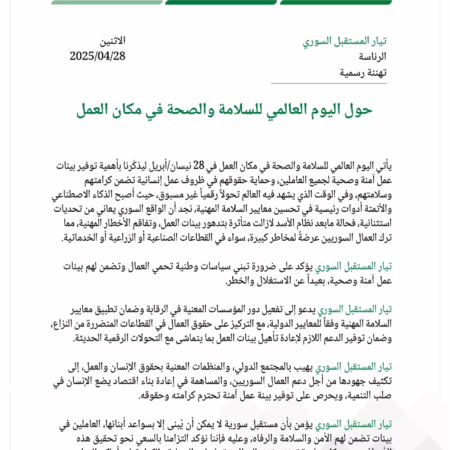 أهمية يوم العمال وما يمثله من تكريم للعمال وحقوقهم في ظل الظروف الصعبة في سورية.
