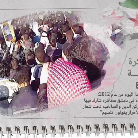 في مثل هذا اليوم من عام 2012م: خرجت مظاهرة في حارة الجديدة بدمشق تحت شعار "طلاب دمشق الأحرار يقولون كلمتهم"