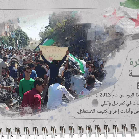 في مثل هذا اليوم من عام 2013م: خرجت مظاهرات في كفرنبل وكللي بمحافظة إدلب في "جمعة الحصار جريمة إبادة مستمرة"