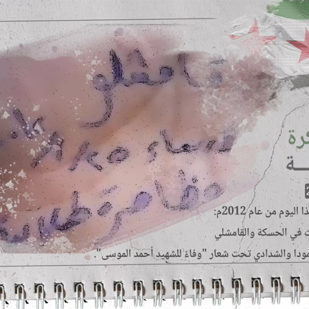 مظاهرات 2012 تلخص أحداث الثورة السورية في الحسكة والقامشلي تحت شعار وفاء للشهيد أحمد الموسى.