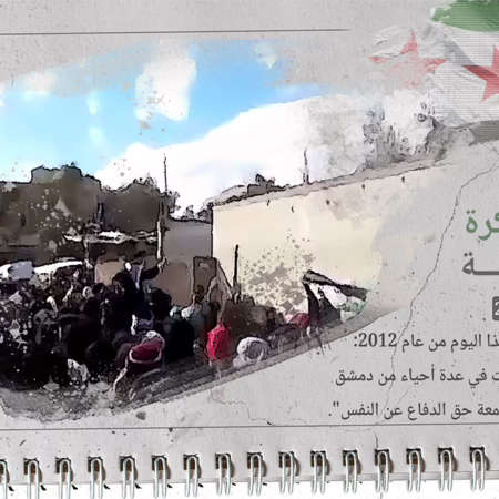 تفاصيل الثورة السورية والمظاهرات التي نشبت في دمشق في 2012 تحت اسم جمعة حق الدفاع عن النفس.